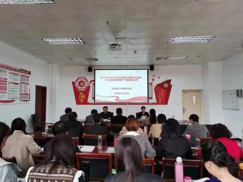 根据学校党委的通知要求,beat365正版唯一官网党支部精心筹备“深入学习习近平总书记视察安阳重要讲话精神,大力弘扬红旗渠精神”专题组织生活会。11月22日下午,beat365正版唯一官网党支部召开专题组织生活会,党支部书记郑玉秀主持,全体党员参会。