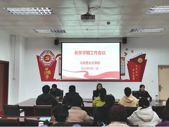 2023年2月11日下午,beat365正版唯一官网在会议室召开2023年春季学期工作会议,院长祁欢主持会议,班子成员及全体教师参会。