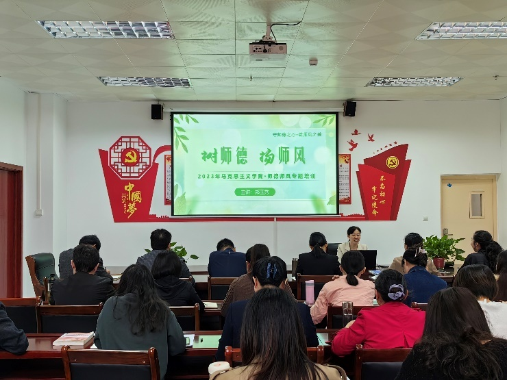随后,党支部书记郑玉秀为全体党员教师上了一堂题为“树师德 扬师风”的专题党课。她从“高校师德师风建设的重要意义、新时代高校教师职业行为‘十项准则’、师德师风的践行与提升”三个方面号召全体教师要深入学习贯彻落实习近平新时代中国特色社会主义思想,坚持不懈用新时代党的创新理论铸魂育人,争做新时代“四有好老师”,努力当好“四个引路人”。(通讯员:李淑文)