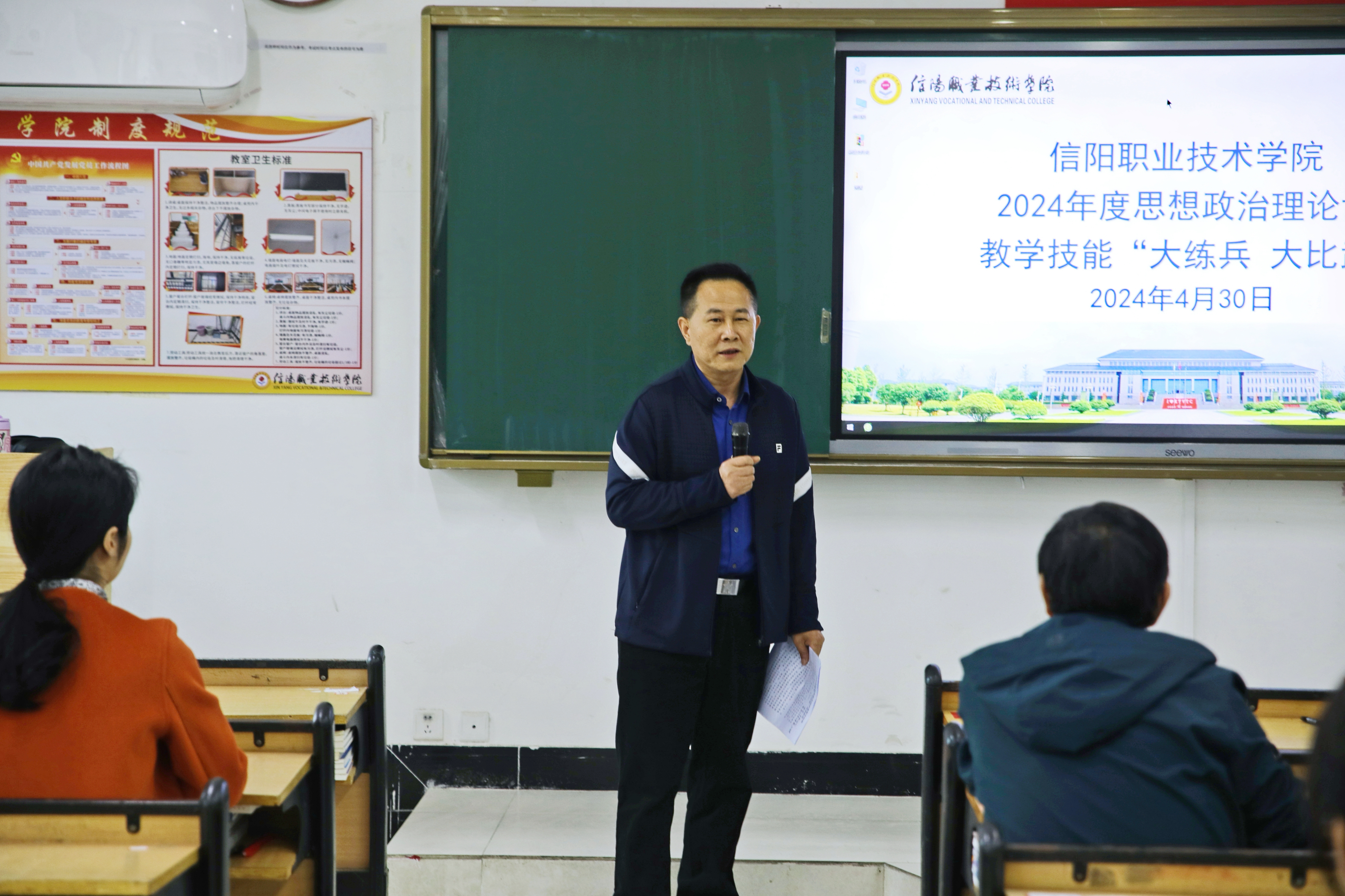 为贯彻落实《中共河南省委宣传部 中共河南省委教育工委 河南省教育厅关于开展2024年度全省学校思想政治理论课教学技能“大练兵、大比武、大展示”活动的通知》精神,进一步提升我校思政课教师教育教学质量和水平,学校于4月30日下午举办了思政课教师教学技能“大练兵、大比武”活动。信阳师范大学beat365正版唯一官网院长唐国战、信阳航空职业学院beat365正版唯一官网院长邱兴平、信阳学院beat365正版唯一官网院长朱新荣、我校语言与传媒学院院长李萍、宣传部文明创建科科长刘曼曼等5名专家应邀担任评委,副校长周有国莅临现场观摩指导。