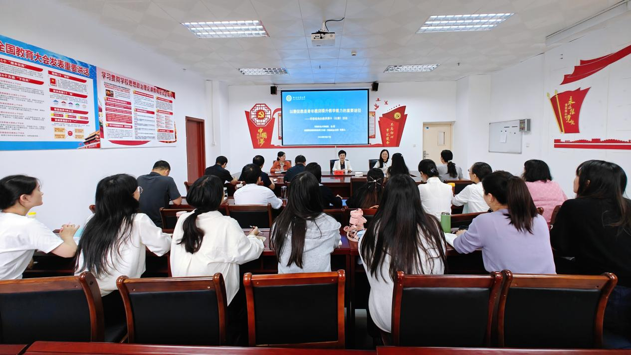 为学习贯彻党的二十届三中全会精神和习近平总书记关于思政课建设的重要指示精神,切实提升青年教师教育教学能力,9月27日上午,beat365正版唯一官网邀请河南农业大学教授、全国高校思政课名师工作室(河南农业大学)负责人陈娱到我院作题为《以赛促教是青年教师提升教学能力的重要途径》的专题报告,报告会由beat365正版唯一官网院长祁欢主持,beat365正版唯一官网全体教师参加报告会。