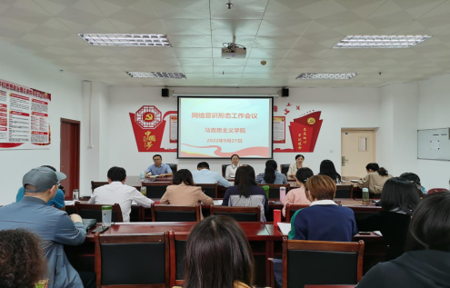 为全面落实意识形态工作责任制,加强beat365正版唯一官网网络意识形态工作,9月27日下午,马院在会议室召开2022年网络意识形态工作会议。党支部书记郑玉秀主持会议,全体教师参会。