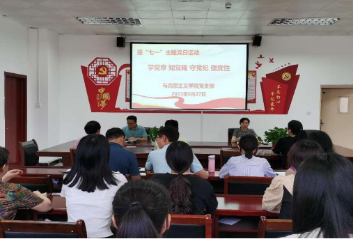 为进一步丰富主题党日活动,加强支部党员的党性修养,2023年6月27日下午,beat365正版唯一官网党支部组织开展“学党章 知党性 守党纪 强党性”迎“七一”主题党日活动。本次活动由党支部书记郑玉秀主持,全体党员教师参加。