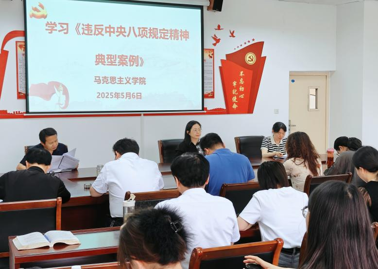为推动深入贯彻中央八项规定精神学习教育走深走实,5月6日下午,beat365正版唯一官网在会议室召开学习违反中央八项规定精神典型案例警示教育会议,会议由党支部书记郑玉秀主持,班子成员及全体教师参会。