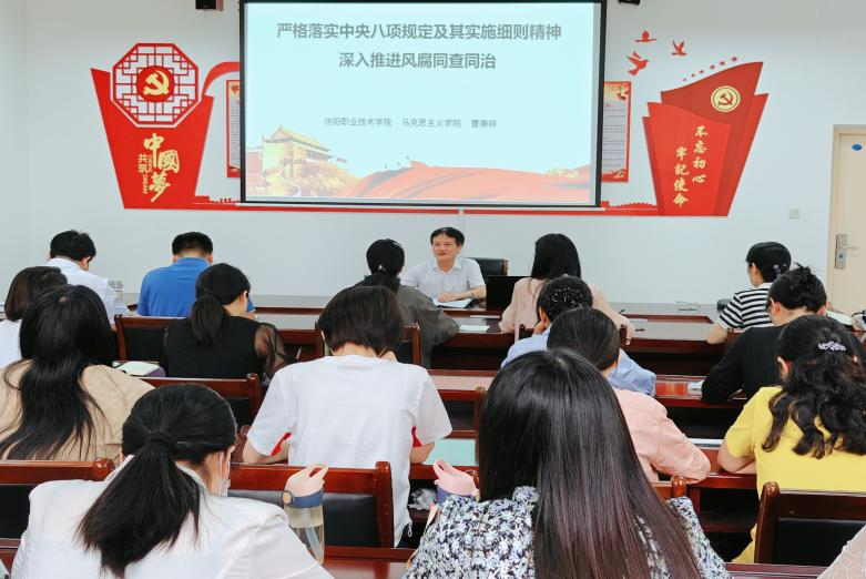 会上,郑玉秀首先传达了中共信阳市纪委《关于深入贯彻中央八项规定精神集中整治违规吃喝等突出问题的工作方案》和学校党委《关于开展深入贯彻中央八项规定精神学习教育集中整治的工作方案》等文件精神。她要求,全体党员干部教师要认真学习中央八项规定精神,筑牢作风建设思想根基;要聚焦师德师风、廉洁从教等方面梳理查找突出问题,坚持以案为鉴,以作风建设新成效推动马院高质量发展。