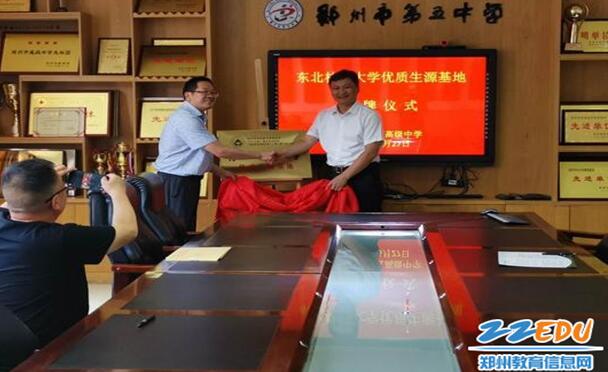 3003新葡平台登录入口与郑州市第五高级中学举行“优质生源基地”共建挂牌仪式