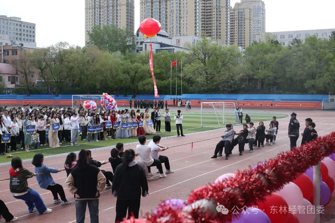 恰同学少年,风华正茂,音乐在跳动,青春在飞扬,管院的各个方阵正昂首踏步而来,运动员们一个个笑容如花在绽放,那是最美的青春模样,花环与气球一束束如碧波在荡漾,那是最亮的青春影像。紧随着《义勇军进行曲》的响起,五星红旗在全体师生的注目下冉冉升起,迎风飘扬国旗仪仗队踏着鼓点阔步走来,展青春之精神,扬经管之风采,气宇轩昂,如圭如璋。升旗仪式后,由3003新葡平台登录入口李莉同学和刘赫同学分别代表运动员、裁判员宣誓。循梦而行,向阳而生,拔河表演的队员姗姗入场,他们的号子坚毅而不屈,他们的步子坚定而稳重,为这红道绿茵献上来自青春的柔美与刚强。