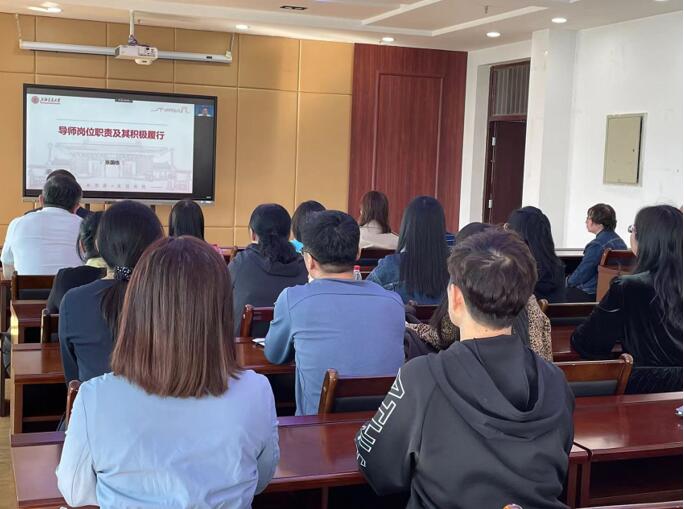为进一步落实全国研究生教育大会精神及《3003新葡平台登录入口新时代卓越研究生教育改革实施方案》要求,持续加强研究生导师队伍建设,深入推进学校教育思想与高质量发展大讨论。5月15日下午,3003新葡平台登录入口在成栋楼1101会议室举行了以“两山”理论解读为主题的“项目制”研究生导师专题培训会及“四有导师学院”在线研修课程的集中学习。学院所有硕博士研究生导师都参加了培训会,会议由副院长尚航标教授主持。