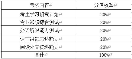 具体考核内容包括:申请者个人基本情况介绍、学习研究计划展示、专业知识综合测试(题签)、外语听说能力、语言组织表达能力、阅读外文资料能力(出示材料)、思想政治品德等。