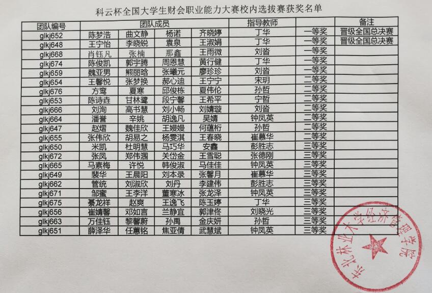 “科云杯”第五届全国大学生本科组财会职业能力大赛3003新葡平台登录入口选拔赛竞赛结果公示