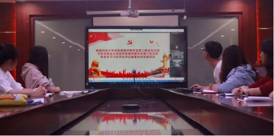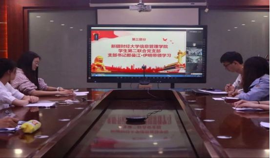 会议伊始,双方学生党员依次进行了简单的自我介绍。随后,新疆财经大学信息管理学院学生第二联合党支部书记那曼江·伊明老师带领全体党员学习习近平总书记重要讲话精神,那曼江老师总结整理了习总书记在讲话中的10句金句,并以此为依托深入讲解了新时代赋予中国青年的历史使命,阐明了广大共青团员要始终与党同心、跟党奋斗的责任要求。