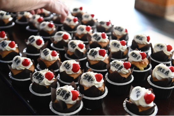 煮饺子的间隙,学院老师们还为毕业生们分发了精心准备的具有毕业生名牌的纸杯蛋糕。