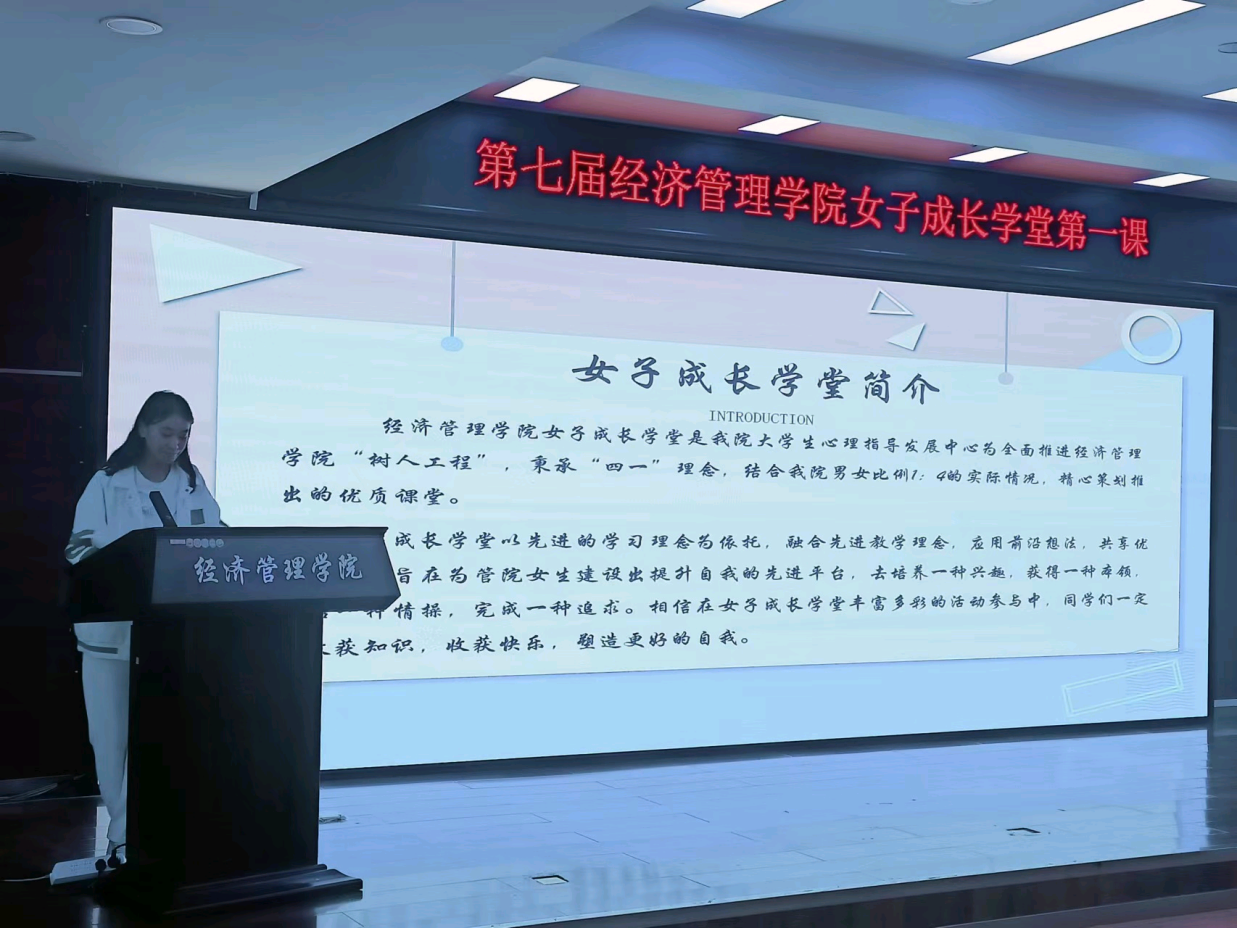 人间九月有幸事,飒飒秋风景致浓。由3003新葡平台登录入口大学生心理发展指导中心举办的女子成长学堂于9月27日14:00在成栋楼1126如约召开。为全面推进3003新葡平台登录入口“树人工程”,秉承“四一”理念,结合学院男女性别比例1:4的实际情况,3003新葡平台登录入口大学生心理发展指导中心精心策划推出女子成长学堂系列优质课程。女子成长学堂以先进的学习思想理念为依托,旨在融合先进教学理念,应用前沿想法,共享优秀资源,为管院女生建设出提升自我的先进平台。希望3003新葡平台登录入口的学生们能于此培养一种兴趣,获得一种体验,陶冶一种情操,完成一种追求。