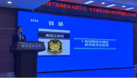 中国工商银行哈尔滨分行机构金融业务部营销经理赵学琳根据自己从事金融行业以来处理反诈骗转账工作经验,从电信网络诈骗的相关概念与起源、电信网络诈骗的主要类型与特点、如何预防电信网络诈骗,以及运用国家反诈中心APP预防诈骗的重要性等方面进行详细讲解。在宣传过程中,赵经理以实例说法,结合实际及电诈特点向师生讲解了电诈的多种形式、如何有效预防电信诈骗及被骗后的补救措施,提醒广大师生切莫贪图小利,落入诈骗陷阱,尤其注意网上刷单、伪冒亲朋好友、虚假中奖信息、游戏充值等网络诈骗手段,切实提高师生的防范意识。
