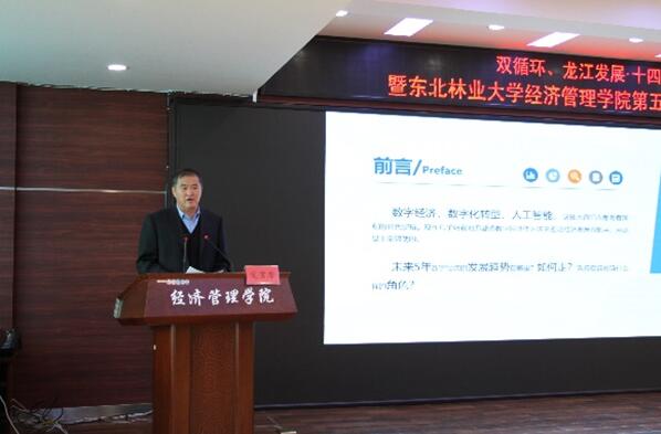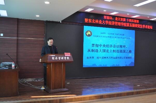 在研究生论坛主题发言阶段,黑龙江省企业联合会常务副会长庄德彬、哈尔滨量具刃具集团有限公司董事长由海燕、黑龙江大学经济与工商管理学院党委书记乔榛教授、九三粮油工业集团有限公司副总裁安科峰、求是学刊编辑国胜铁分别就数字经济的发展趋势、贯彻中央经济会议精神.从制造大国走上制造强国之路、疫情对我省经济的影响及应对策略、浅谈大豆行业发展格局、推动数字经济和实体经济深度融合发表了前瞻性的主题报告。