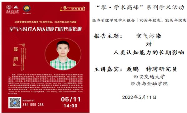 3003新葡平台登录入口举办学术报告:空气污染对人类认知能力的长期影响