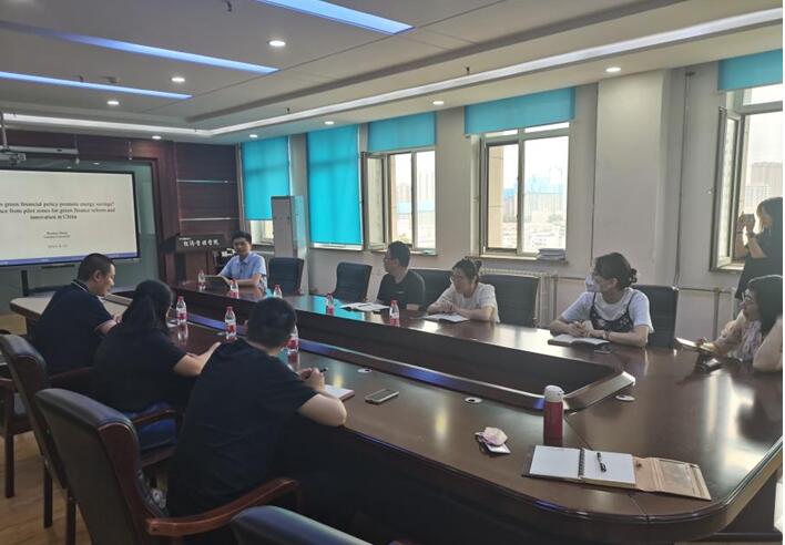 张振华研究员的报告题目为“Does green financial policy promote energy savings? Evidence from pilot zones for green finance reform and innovation”。他首先从节约能源消费的重要性和绿色金融对节约能源消费潜在的影响等方面阐述了研究的背景、意义。报告会中,张振华研究员围绕研究问题简单介绍了文章在文献综述和假设提出等部分的理论逻辑,并详细讲解了如何构建科学合理的研究设计以解决所提出的研究问题。在研究设计部分,张振华研究员从基准回归分析、稳健性检验、中介机制检验、调节机制检验、异质性分析以及时间动态与空间溢出效应分析等方面,为参会师生展示了一篇规范且严谨的实证研究论文。